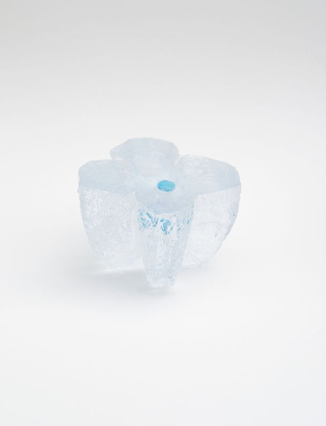 Shipwrecked Voids consists of three material translations of the placental cavity of a pepper. The series stems from the desire to reveal the interstitial, private, and protective space by making it tangible and palpable. The casting process and the materials used allow the manifestation of this form to be preserved over time; resins and jesmonite are intended to visually evoke amber, ice, and volcanic rock— states of substances formed through processes such as fossilization and glaciation, which crystallize materials, filling and preserving the shapes of the spaces they occupy.